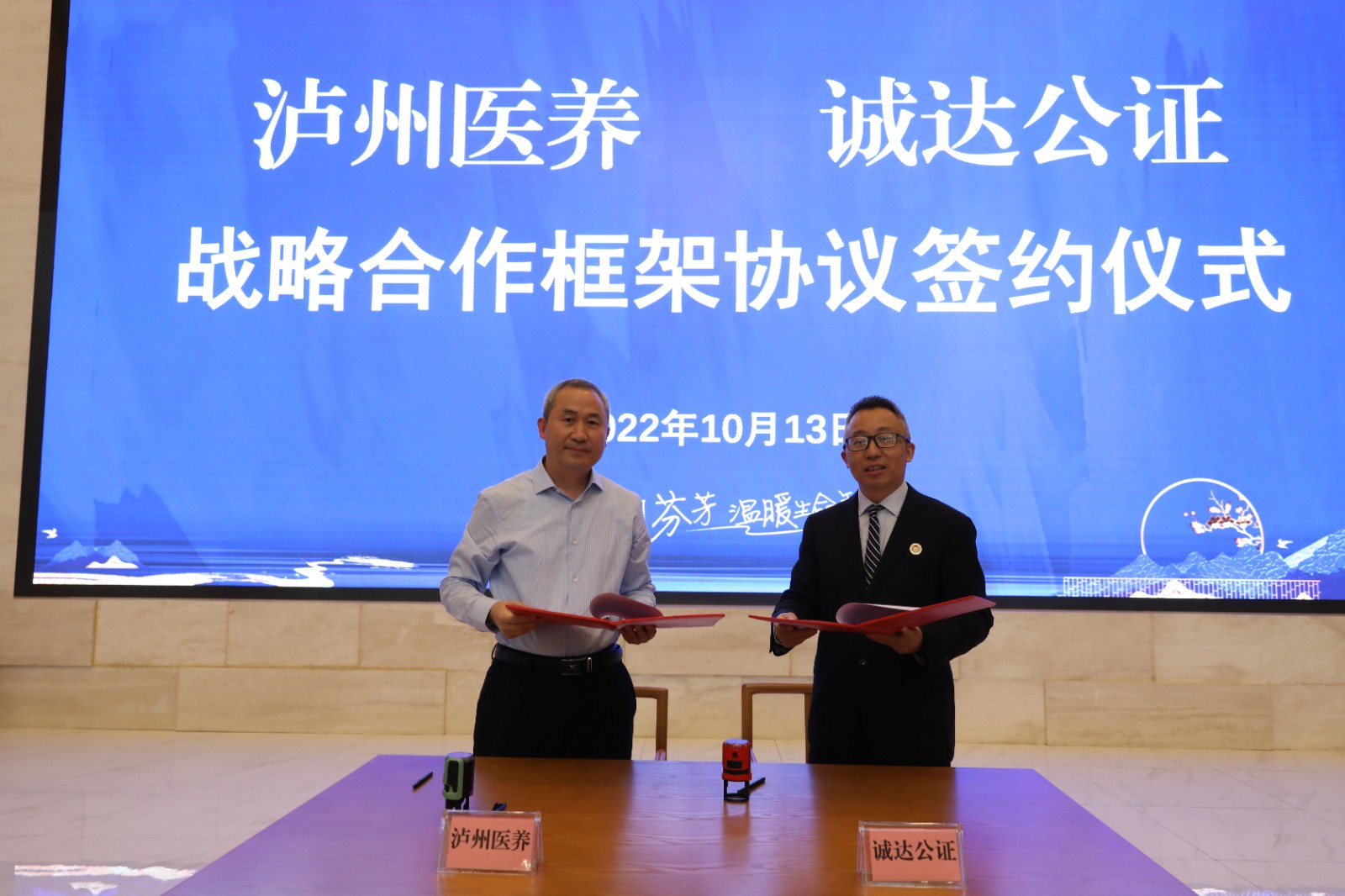 為深入貫徹黨和國家老齡工作的方針政策,弘揚敬老、愛老、尊老傳統美德,維護老年人合法權益,在2022年“重陽敬老月”公益活動期間,10月13日上午,瀘州醫養投資公司與瀘州誠達公證處簽署戰略合作框架協議,為入住老人開展公證服務。西南醫投集團副總經理武瑛、龍馬潭區司法局副局長羅應東等出席簽約儀式。